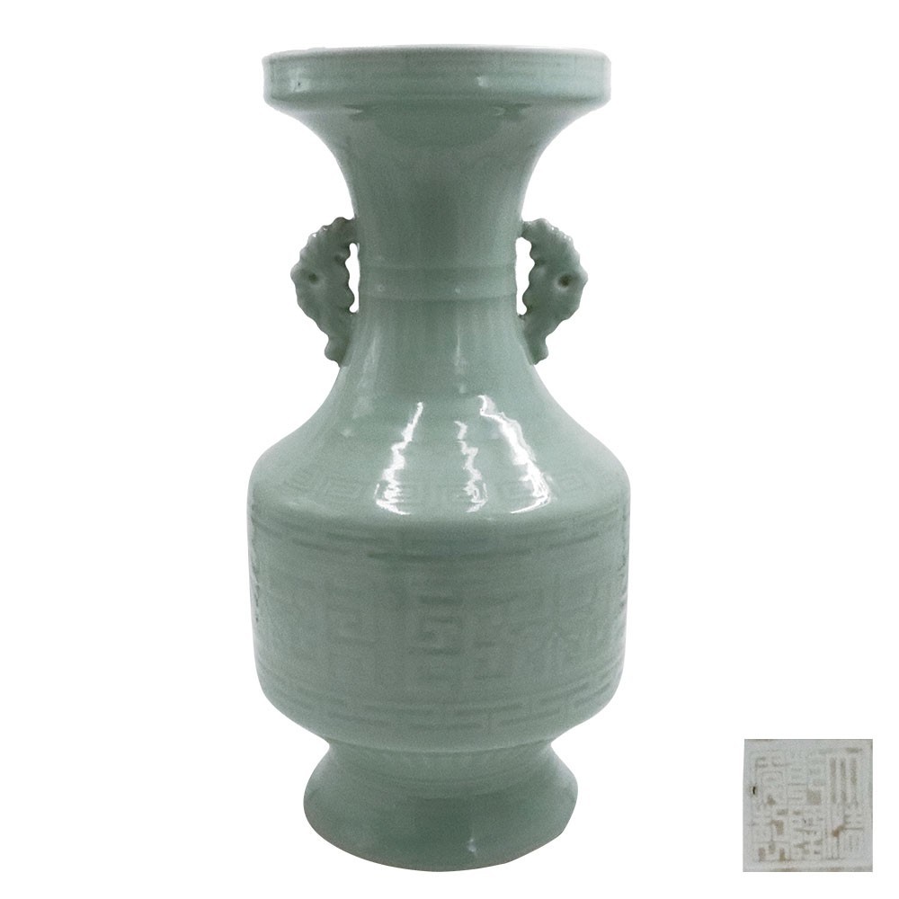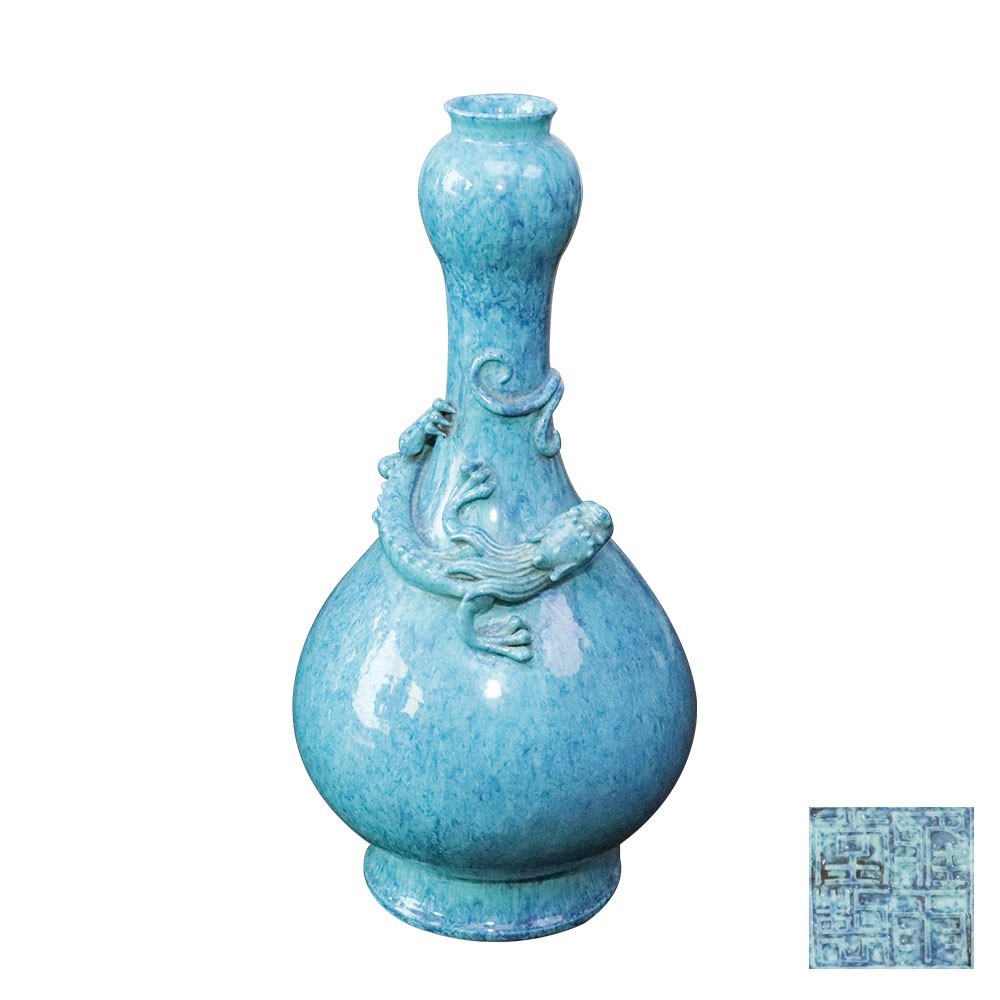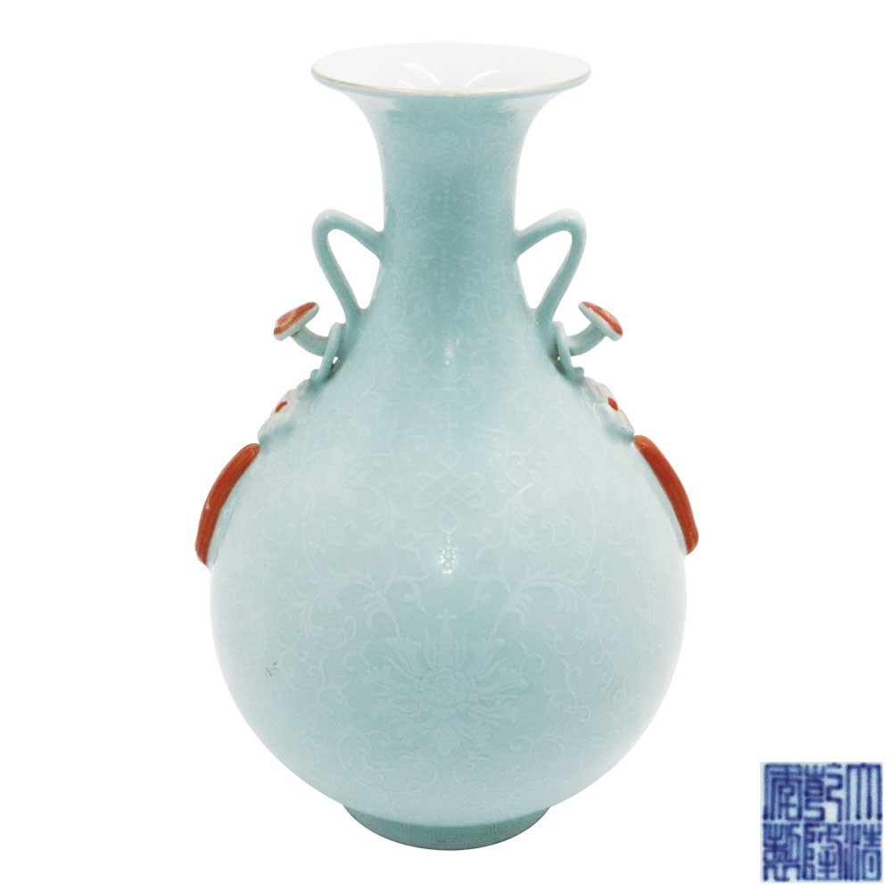 Lot27:清代 松石绿釉宝相花如意耳瓶