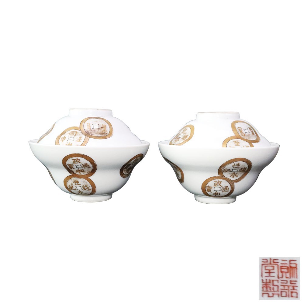 Lot29:清代 描金铜钱纹盖碗(一对)