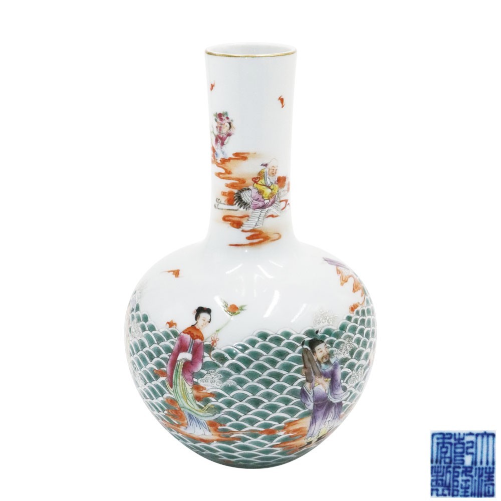 Lot8:清代 粉彩八仙过海福寿纹天球瓶