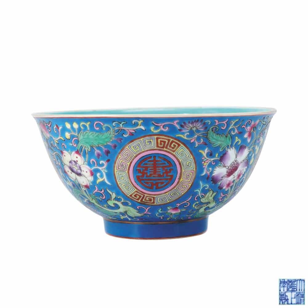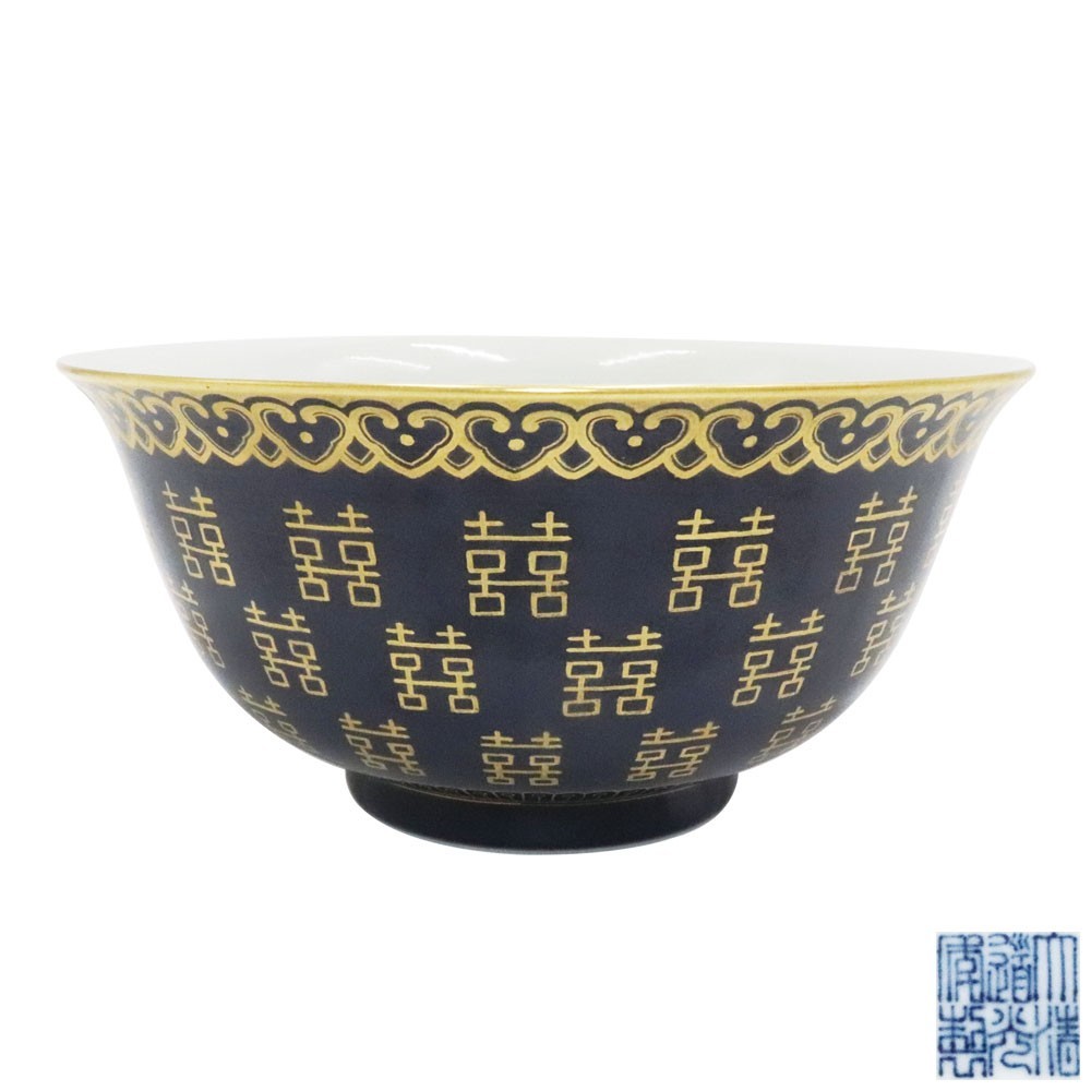 Lot9:清代 霁蓝釉描金双喜如意纹碗
