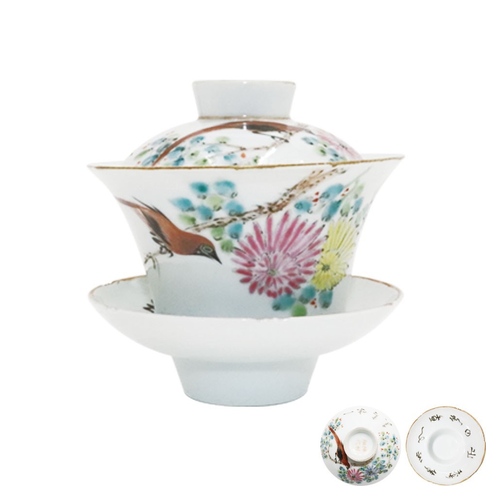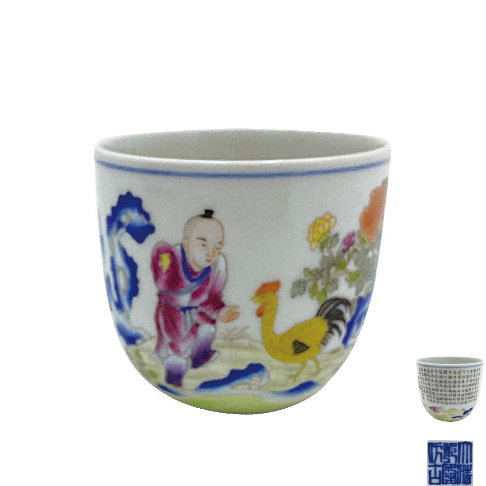 Lot35:清代 粉彩题诗纹鸡缸杯