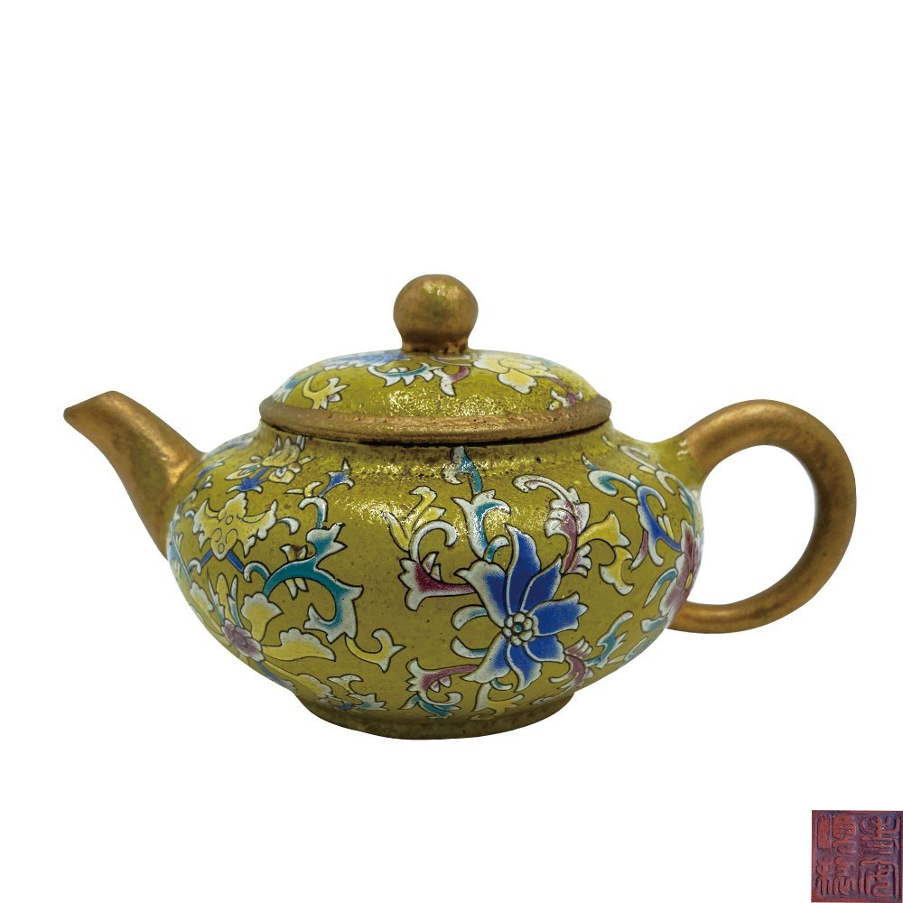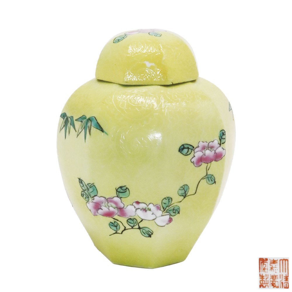 Lot6:清代 黄地粉彩花卉纹八棱盖罐