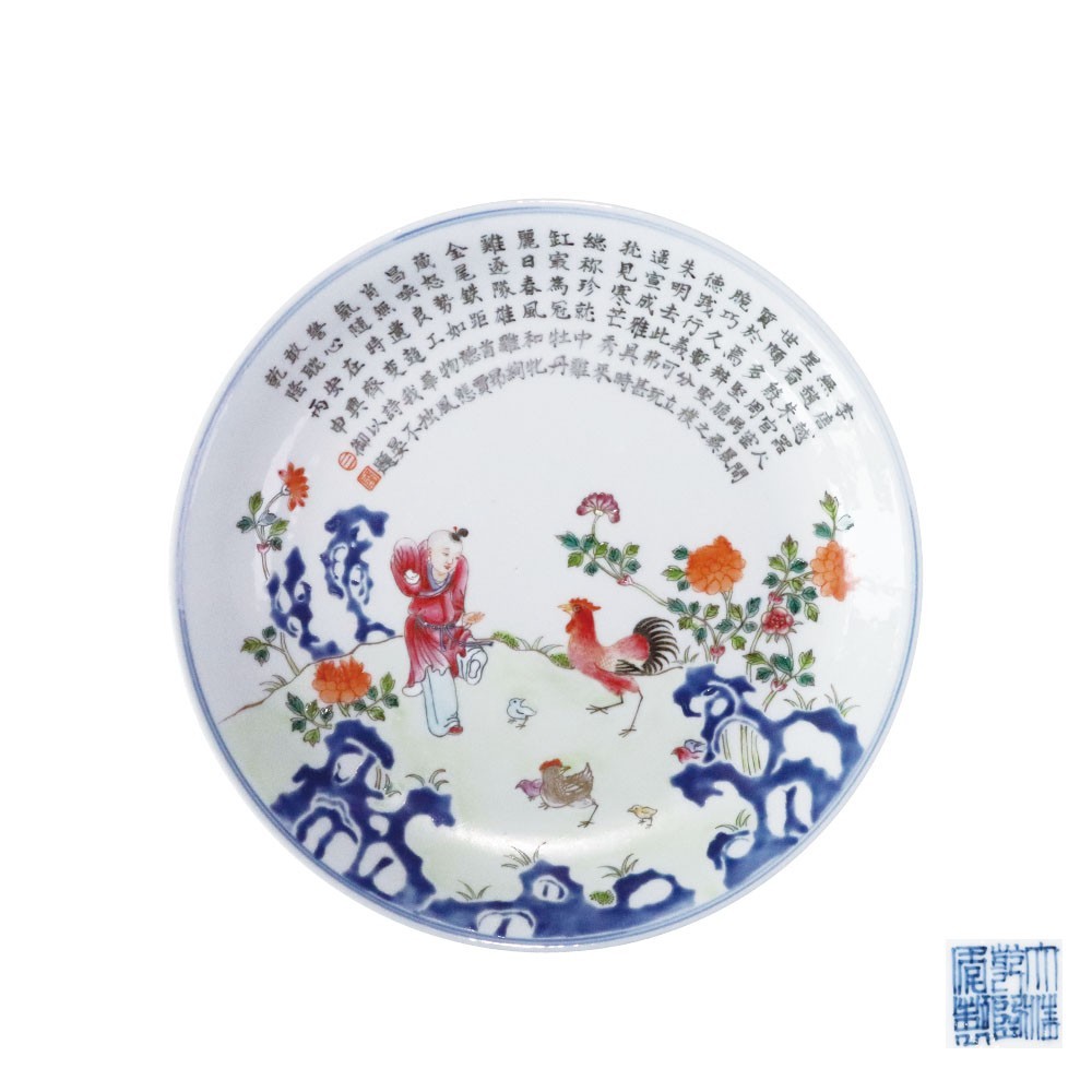Lot10:清代 粉彩婴戏锦鸡诗文赏盘